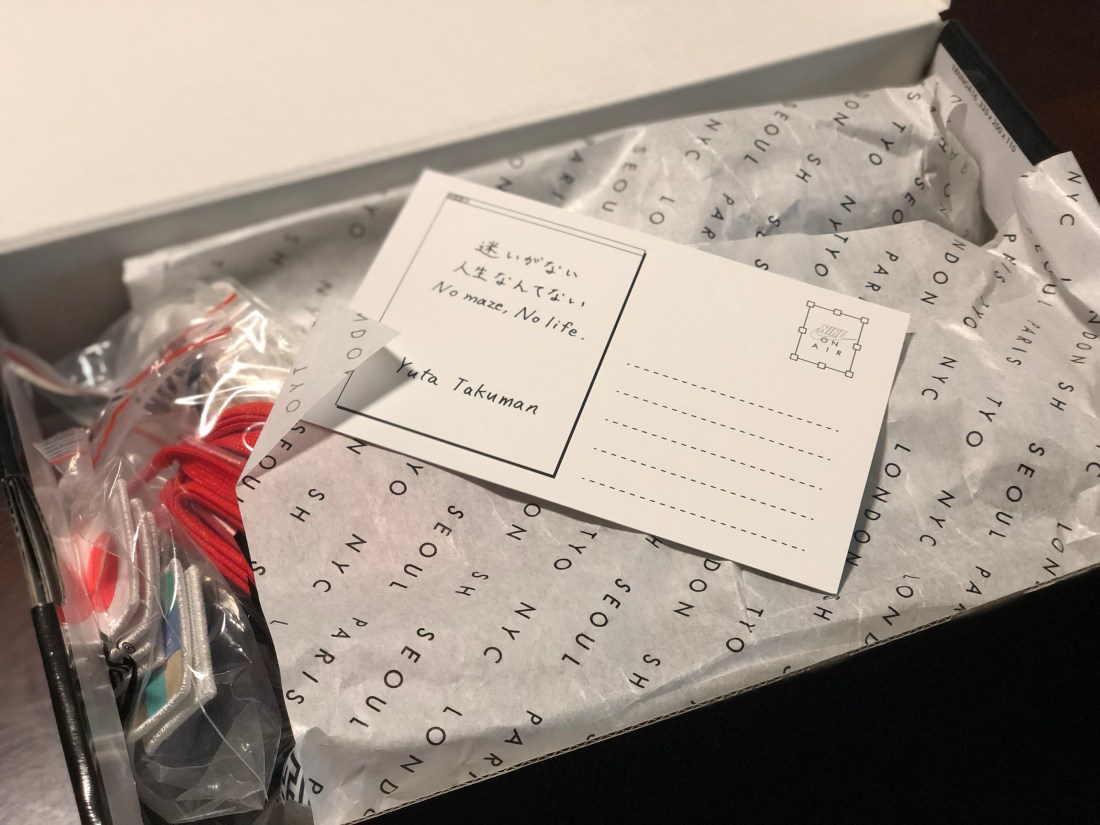 Immediately upon receiving my package, I was greeted by the Nike: On Air logo.With excitement I opened the box and found that the tissue paper had the 6 locations from the On Air contest. Alongside this was an On-Air postcard that simply stated, “No maze, No Life.” As soon as I saw the amount of effort was put into even the smallest detail, I felt like I had something special.